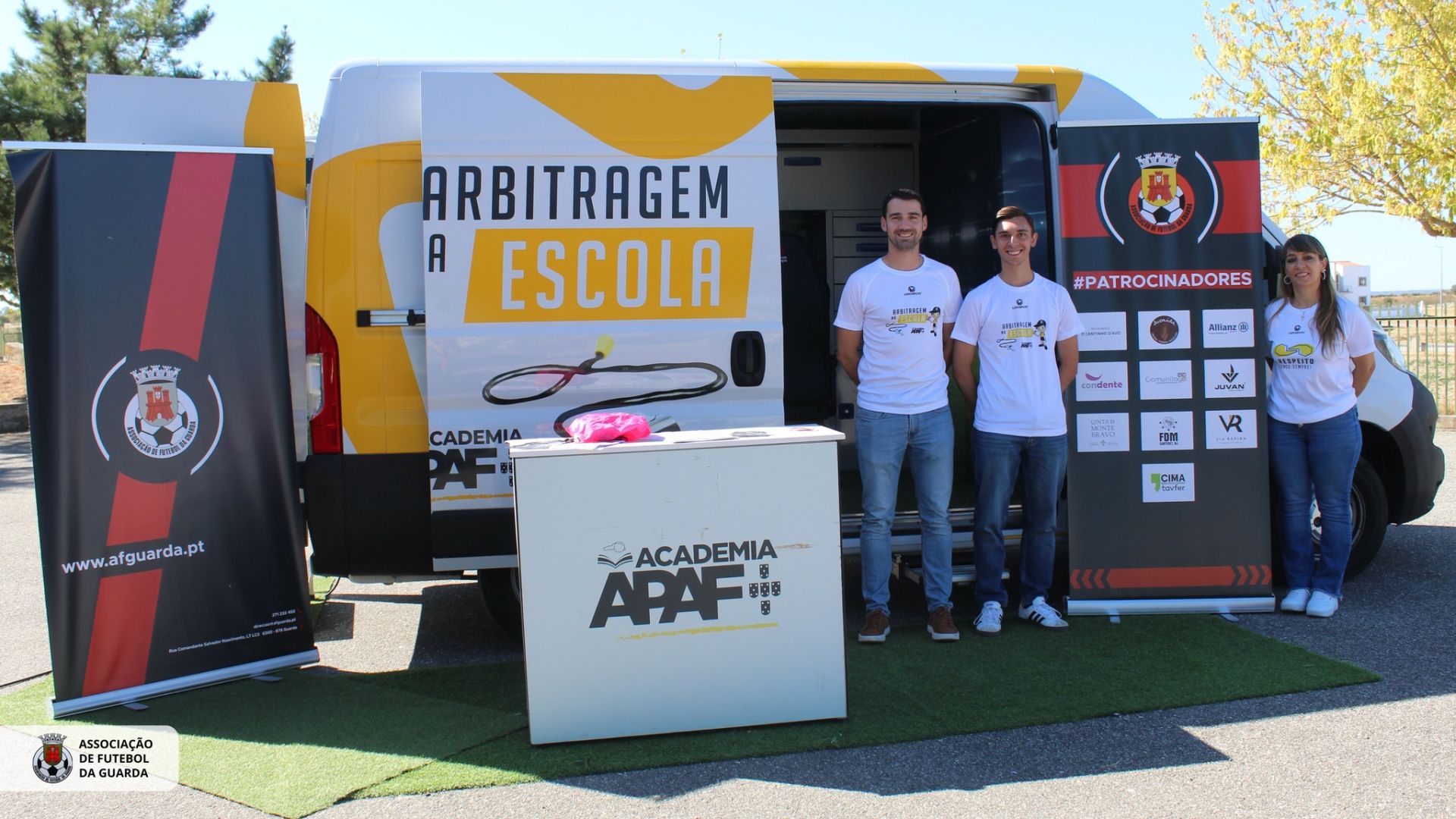 A Carrinha da APAF ‘Arbitragem na Escola’ está no distrito da Guarda e ontem visitou o Agrupamento de Escolas de Almeida, em Almeida.